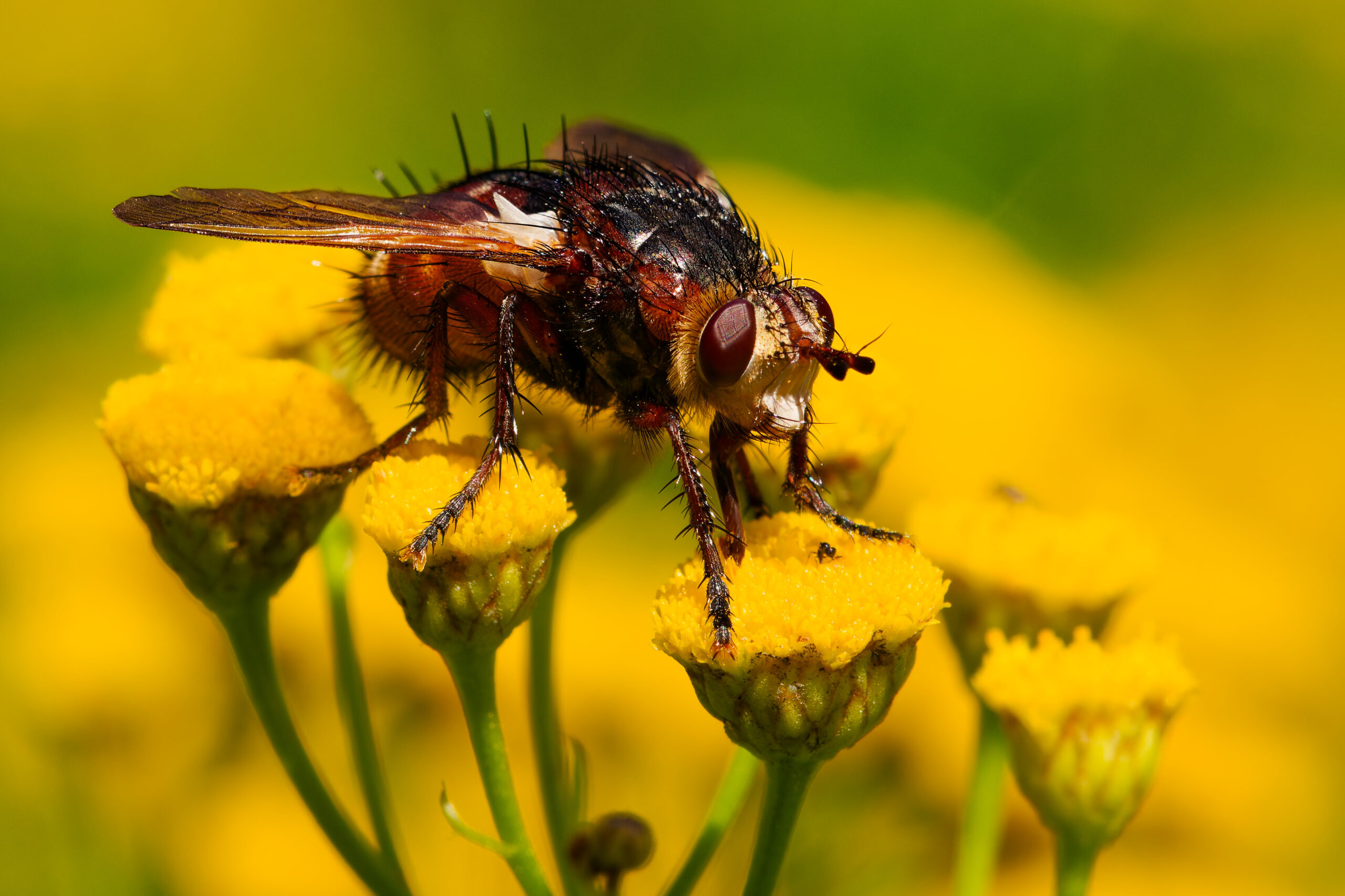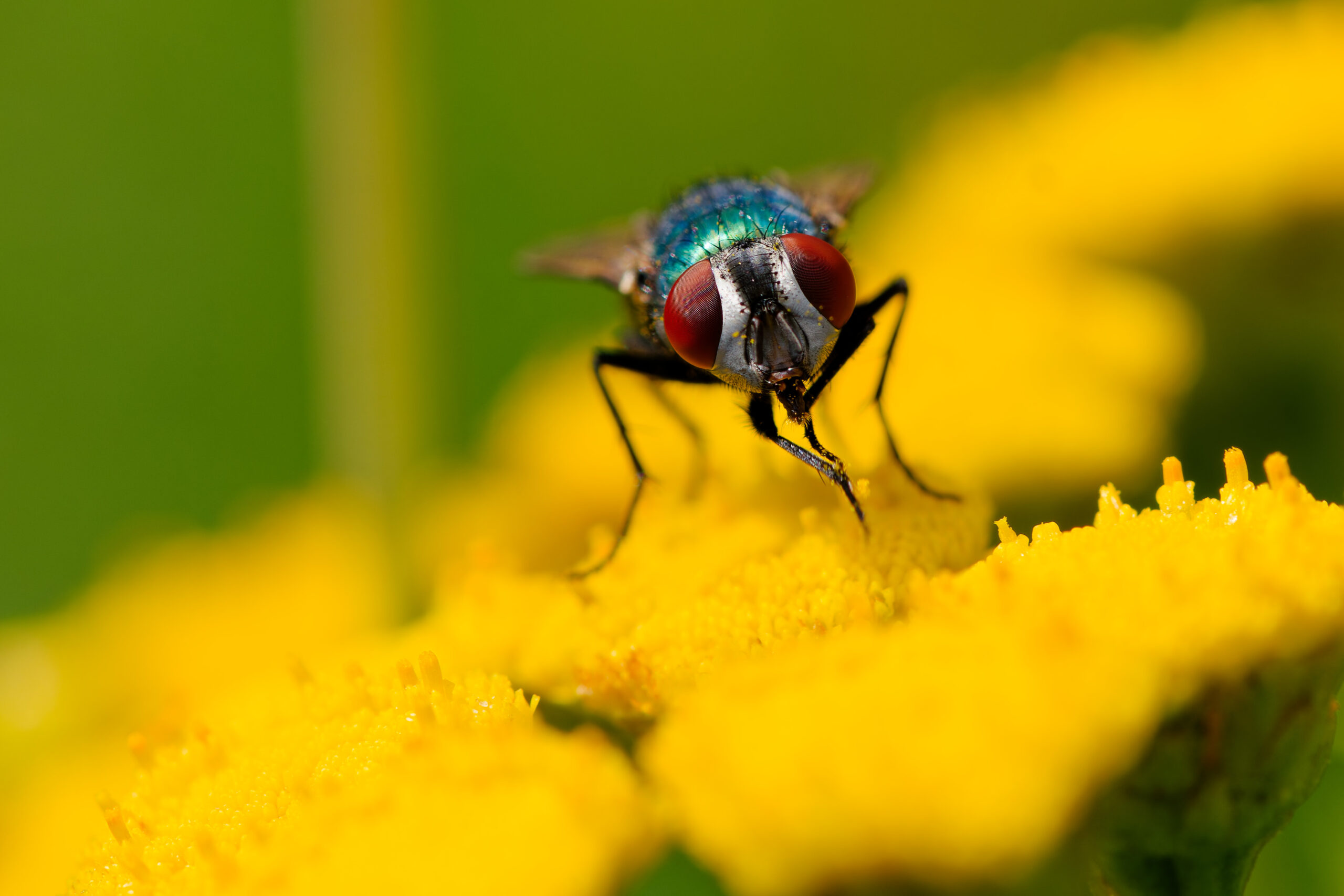 Paljon tuli epätarkkoja kuvia, mutta sitten kun asiat osuu kohdalleen, niin jälkin on kyllä melkoisen hienoa. Tätä hyönteisten läheltä tutkailua tulee varsin harvoin tehtyä, joten tulokset ovat useimmiten kiintoisan näköisiä. Esim Sofia sanoi ettei hän tiennyt kärpästen olevan karvaisia.