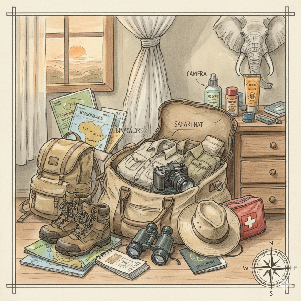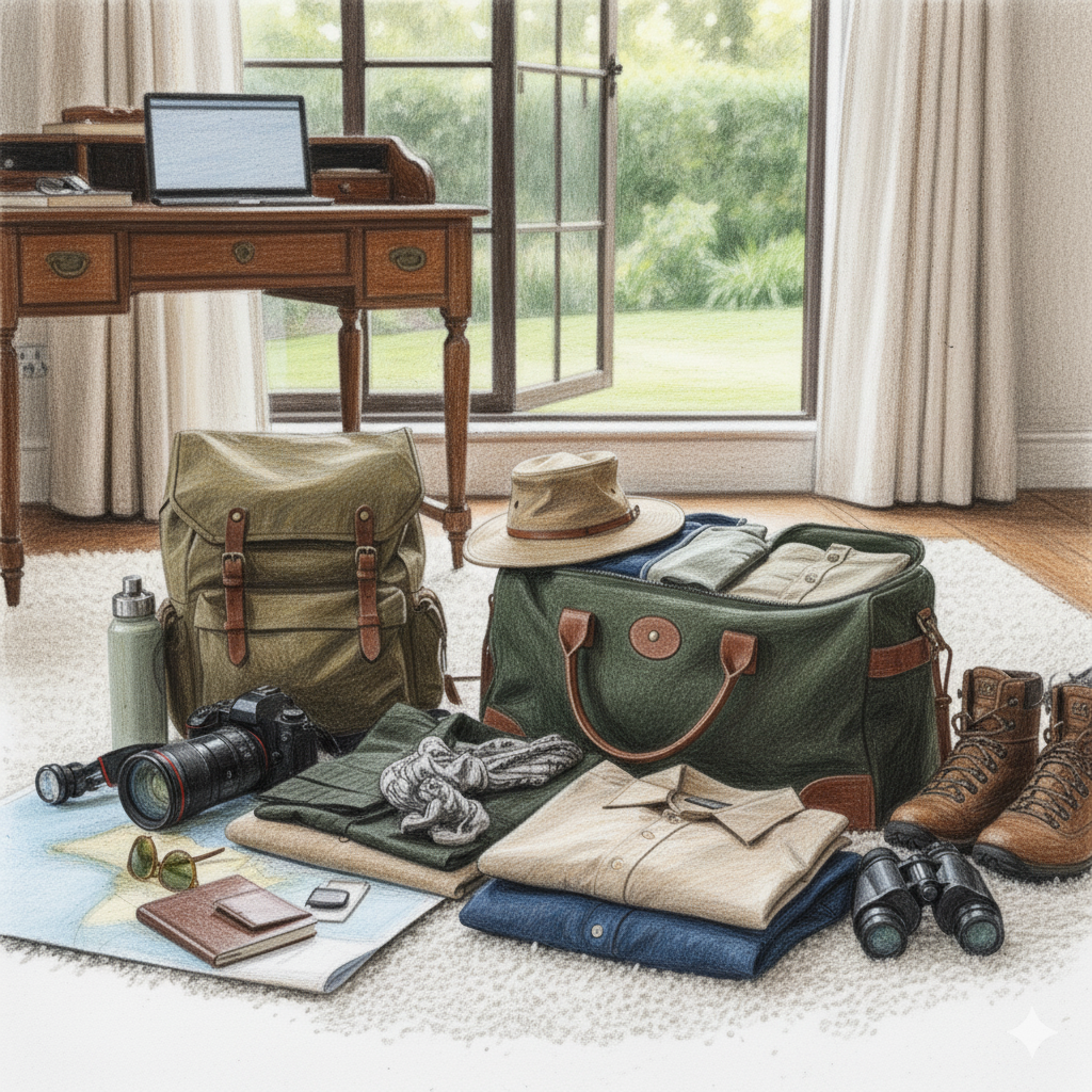 Ratsastustunnin ja auton pesun välillä ehdittiin tekemään suunnitelmissa ollut matkatavaroiden koepakkaus. Tavarat näyttää sopivan mukaan oikeastaan paremmin kuin ajattelin, mutta samalla selvisi että Sofialla ei ole oikein siitejä ja sopivan värisiä T-paitoja. Hyvä kun tämä tuli nyt selville, niin tässä on vielä pari viikkoa aikaa korjata tilanne. Näytti jo siltä, että mehän pärjätään ilman Sofialle ajateltua ruumaan menevää kassia, mutta pitäähän meillä jokin paikka olla Afrikassa, johon laitetaan meidän paksummat & pidemmät lentomatkalla tarvittavat vaatteet. Eli mennään ihan suunnitellulla setillä.