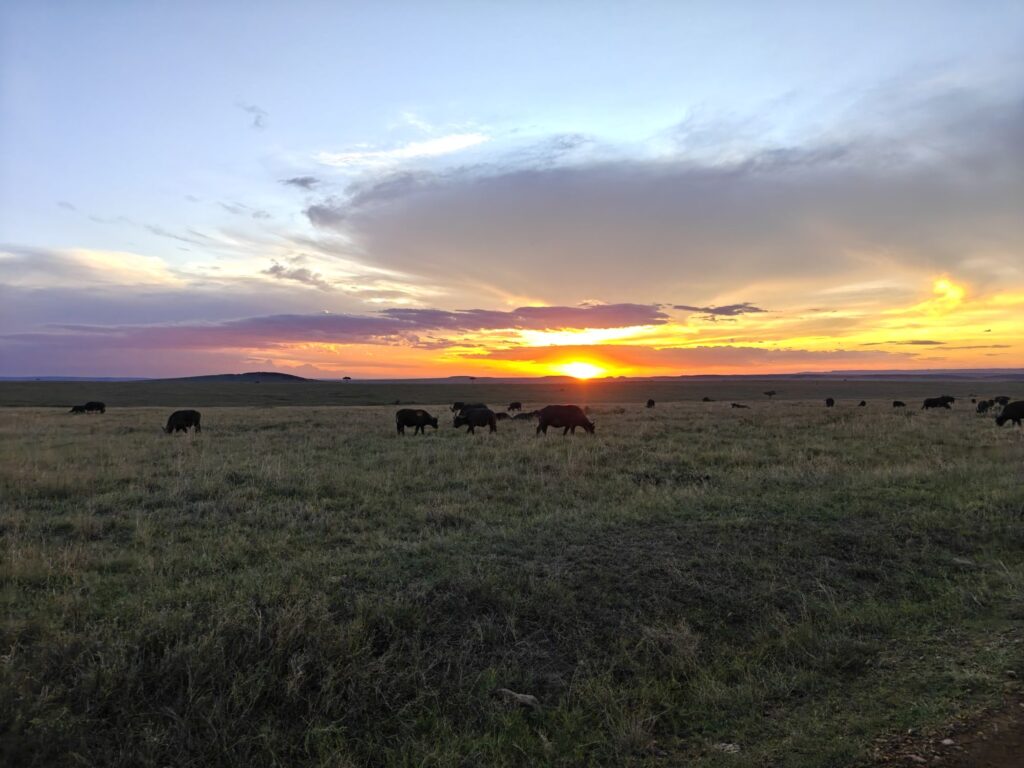 Ennen lodgelle saapumista saimme vielä nipun upeita kuvia auringon laskusta savannilla. Taivaalla oli vieläpä aika sopivasti pilviä auringonlaskun kuvaamista varten.