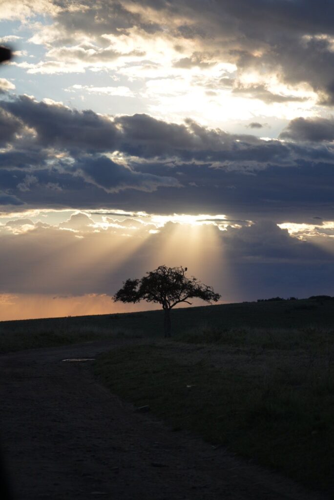 Tälläkin kierroksella taivaalla oli aika sopivasti pilviä ja auringon lasku oli tosi upean näköinen. Niitä täällä riittääkin aika usein. Iso ero kotisuomeen näissä auringon laskuissa on se, että ne pääsee näkemäänkin. Varsinkin näillä avoimilla savanneilla, jossa näkee todella pitkälle esteettömästi.