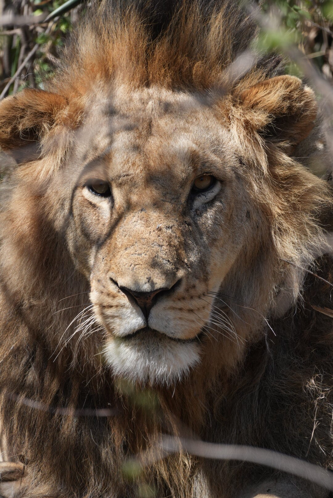 Emme kovin pitkälle ehtineet ajella, ennen kuin meidän piti poiketa tieltä tarkistamaan mitä pari autoa oikein kyttäsi? Leijonalaumaahan ne siellä olivat katsomassa. Pääsimme kiertelemään aika lähietäisyydeltä leijonat, mutta yksi naaras alkoi murahtelemaan meille ja se jätettiin aika nopeasti omiin oloihinsa. Laumassa oli yhteen 15 jäsentä ja siinä oli useita pentuja ja kaksi aikuista urosta. Ilmeisesti veljekset, koska normaalisti laumassa on vain yksi aikuinen uros.