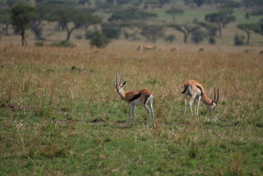 Jatkaessamme matkaa, näimme varsin vähän muita eläimiä paitsi savannigaselleja. Niitä olimme tähän mennessa nähneet vain siellä täällä muutamia gnu ja seepralaumojen seassa. Nyt näimme pelkästään savannaigaselleja ja niitä olikin todella paljon. Harvassa savannilla syömässä, mutta laumaa tuntui vain jatkuvan ja jatkuvan. Savannigasellien lisäksi muutama kirahvi tuli kuvattua kuten myös kuningastrappi, pahkasika rapsuttamassa itseään termiittikeon kylkeen ja faaraorotta eli Egyptin mungo.