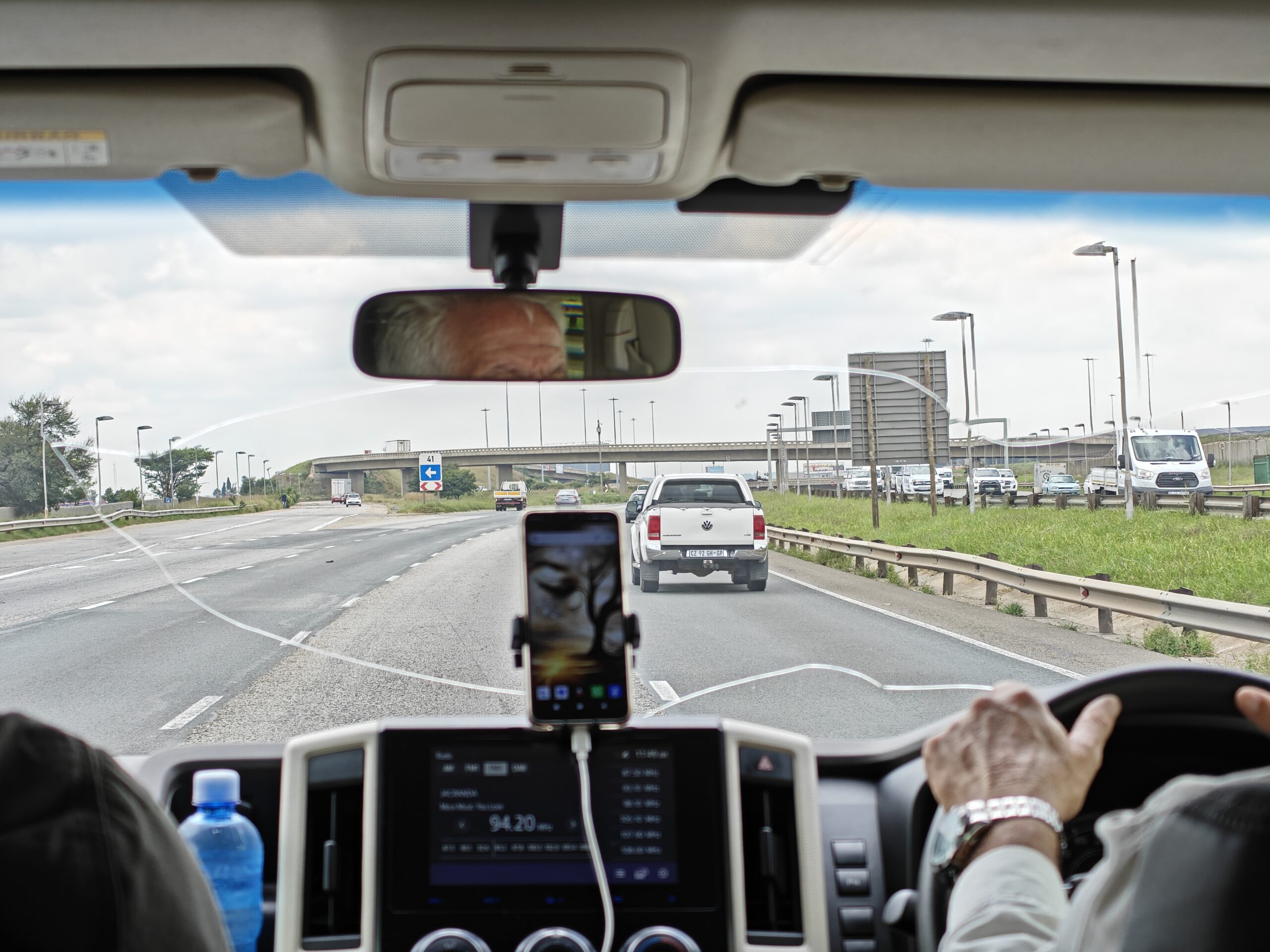 Pysähdyimme matkalla vessatauolla ja vähän sen jälkeen syömässä. Sapuskapaikka oli pieni ja siellä tarjoiltiin vain kolmioleipiä ja jonkinlaisia wrappejä. Molemmissa juustoa sisällä. Ihan hyvä eka kontakti Etelä-Afrikkalaiseen ruokaan, jolla pärjäsi toisen automatkan puolikkaan. Ajoitus ei olisi paljon parempi voinut olla, koska ulkona syödyn lounaan loppupuolella alkoi tihuttamaan vettä. Ei erityisen paljon, esim Sofia ehti heittelemään palloa paikan koiran kanssa noustuamme pöydästä, emmekä silti kummemmin kastuneet.