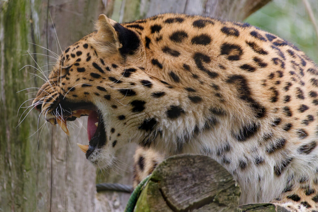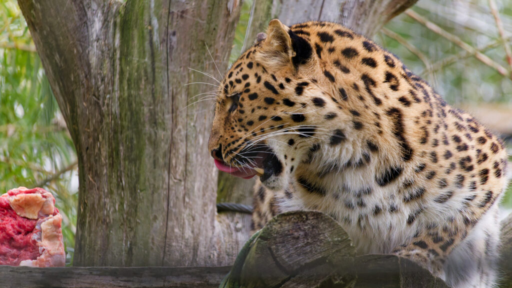 Myös amurinleopardi (hänen nimi on muistaakseni Inka) oli saanut sapuskaa. Ja esittelipä hän vähän hampaitaankin.