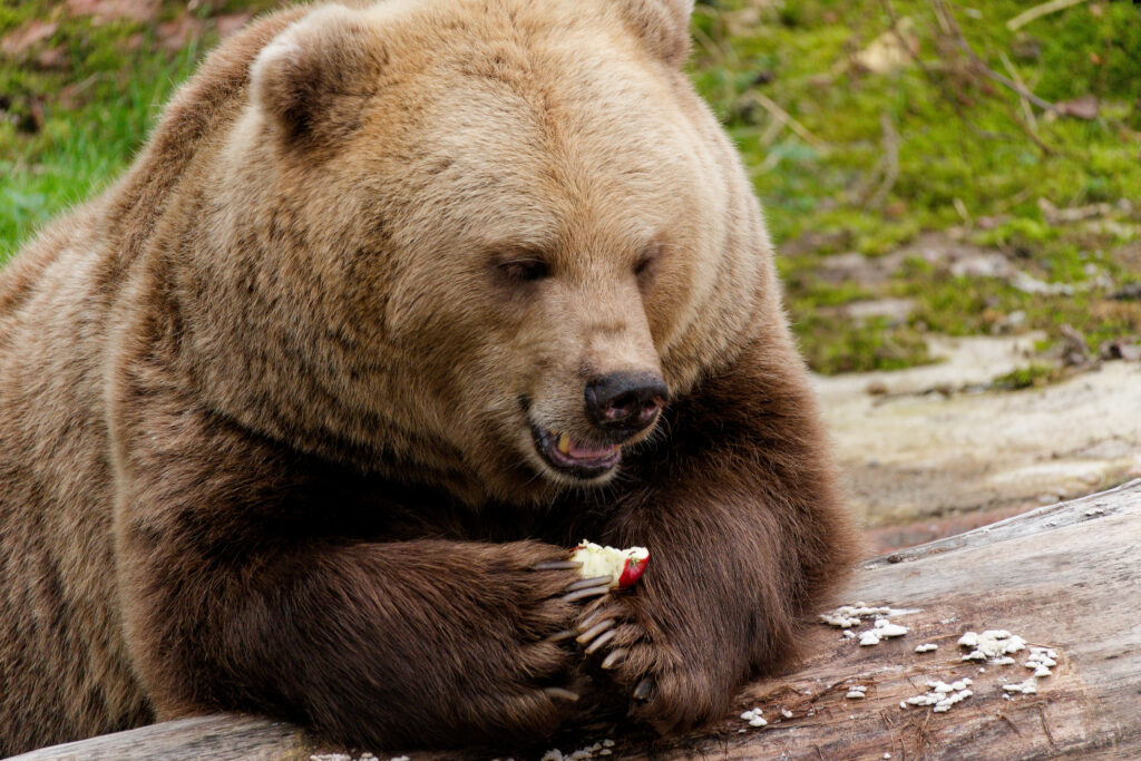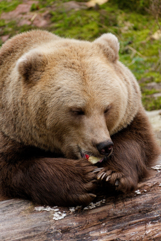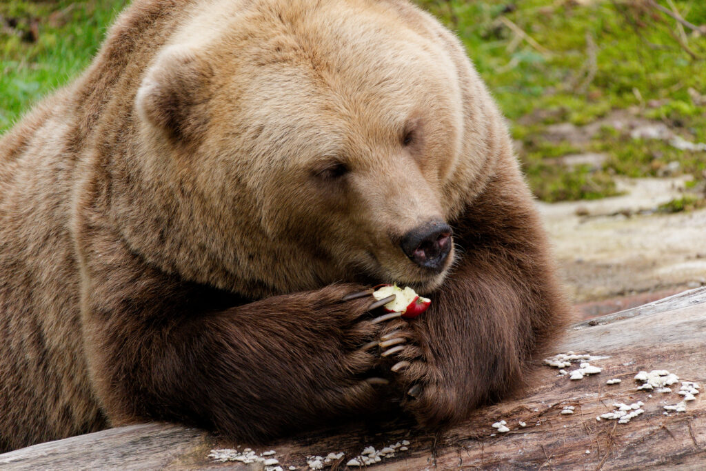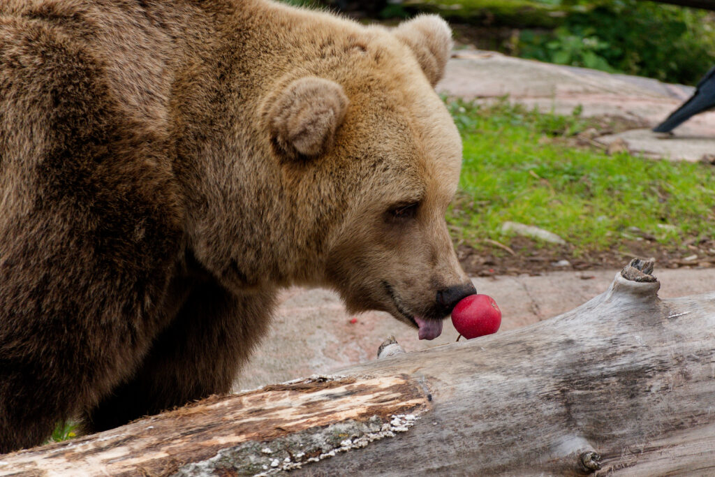 Karhuilla oli aitauksiin piilotettu omenoita, näyttivät hyvin kelpaavan ainakin Sofialle. Julia siellä toisella puolella kaiveli jotain. Ilmeisesti sitä jotain kiinnostavaa oli piilotettu pikkaisen maan alle.